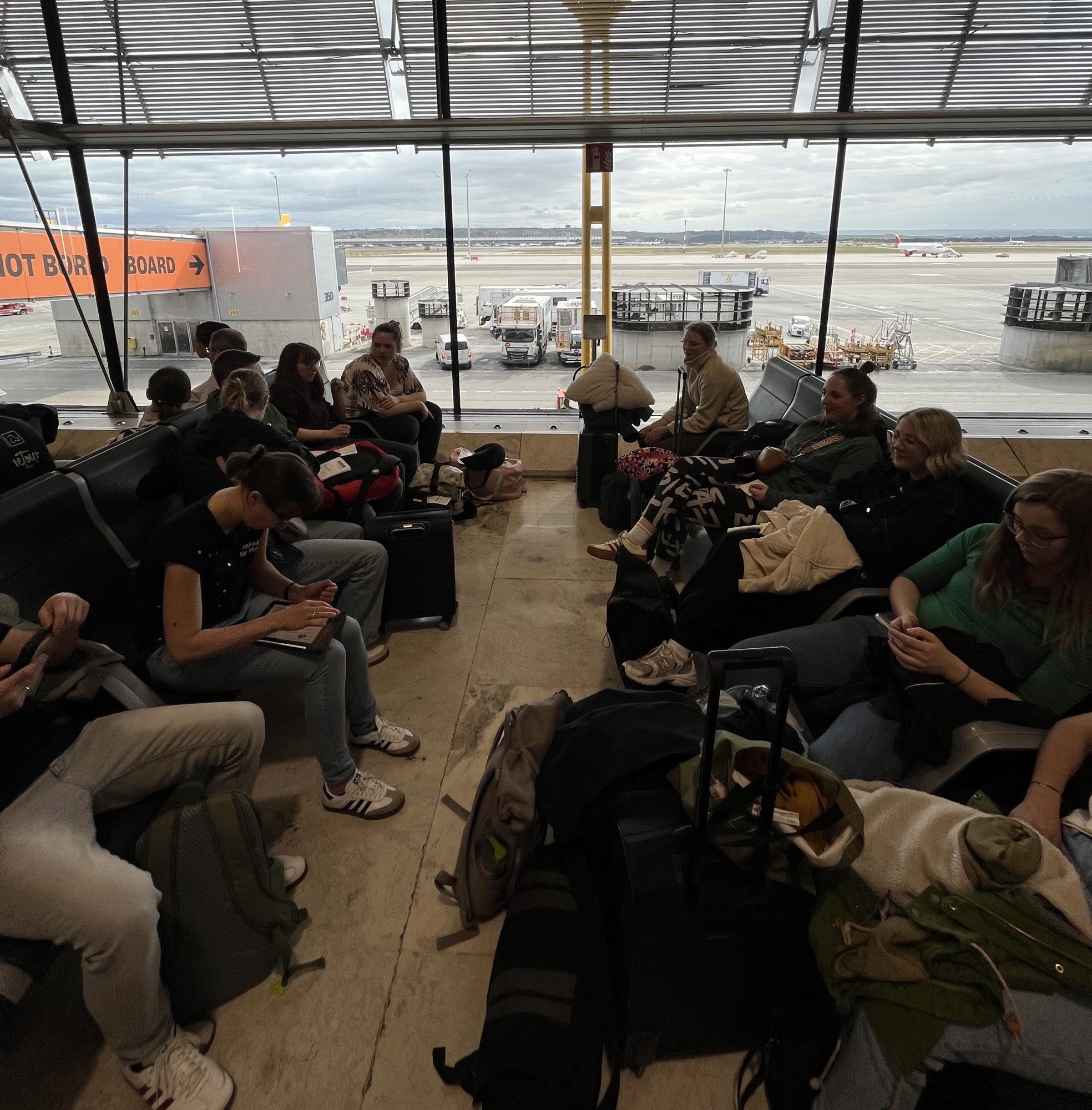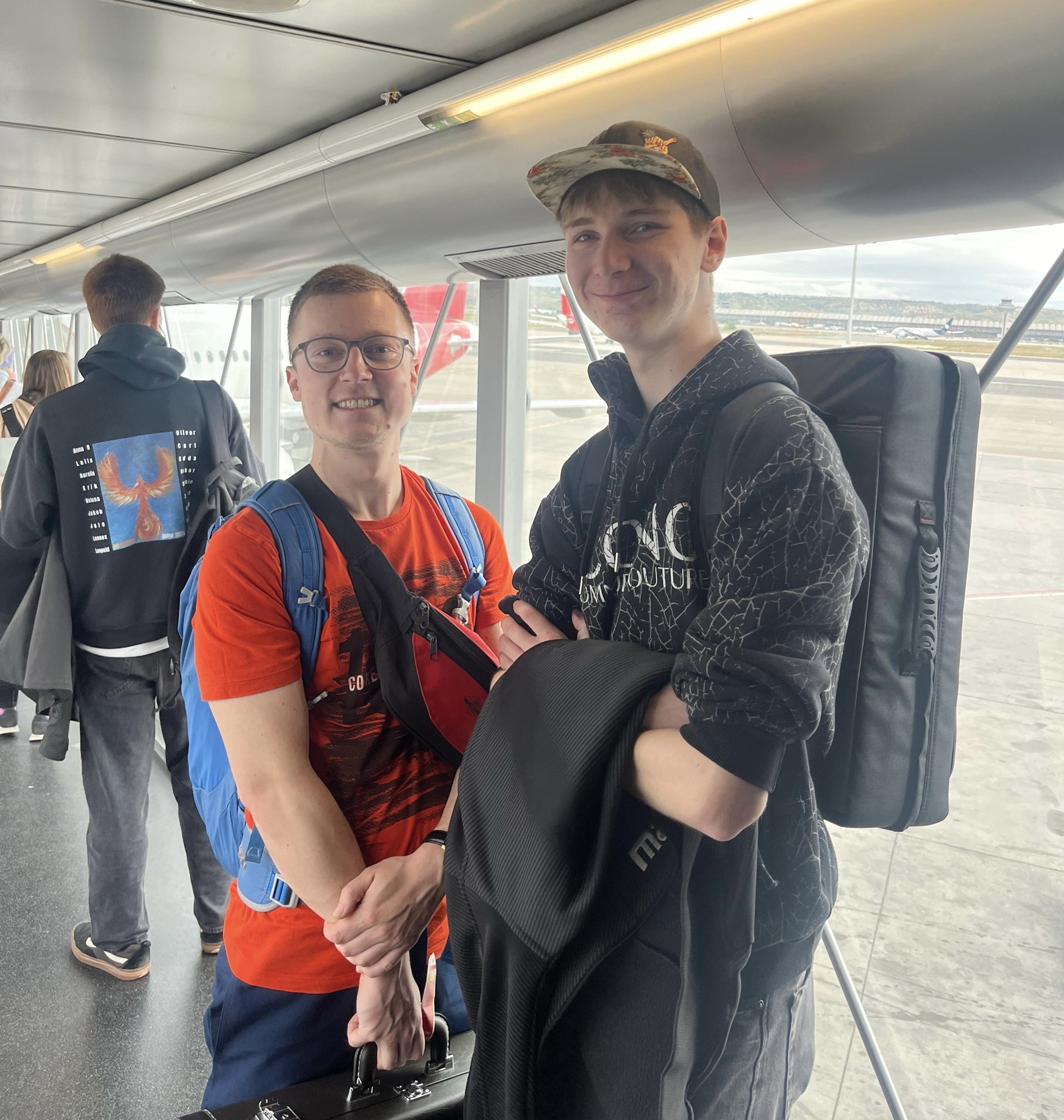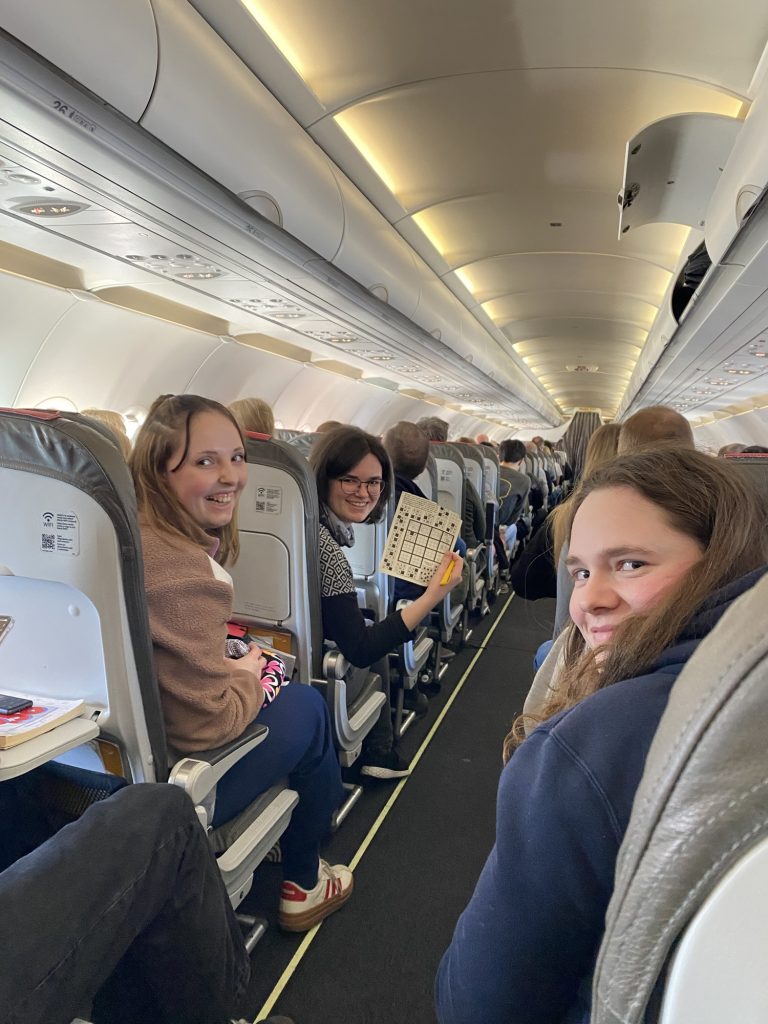 Ab und zu hörte man bei der Sicherheitskontrolle den Satz: „Bitte einmal zur Seite treten.“ Relativ schnell stellten die Mitarbeiter nämlich fest, dass sich hier einige Instrumente im Handgepäck befinden. Trotzdem verlief alles reibungslos, und am Gate begegneten sich schließlich wieder viele bekannte Gesichter. Das Ganze dank der guten Vorbereitung des Orga-Teams unserer Reise!