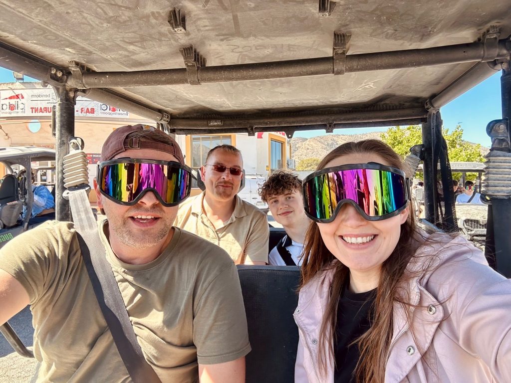 Am Nachmittag ging es weiter nach Benidorm, wo eine Jeep- und Buggy-Tour durch Zitrusplantagen, ein Flussbett mit Schilftunnel und schließlich bis zum Wasserfall Les Fonts d’Algar auf uns wartete. Was für ein Spaß! Mit viel Gelächter und Begeisterung erkundeten wir die Landschaft, und am Wasserfall angekommen ließen wir uns das kühle Wasser einfach um die Füße plätschern. Gut gelaunt und mit vielen schönen Erinnerungen im Gepäck traten wir schließlich den Heimweg nach Dénia an.