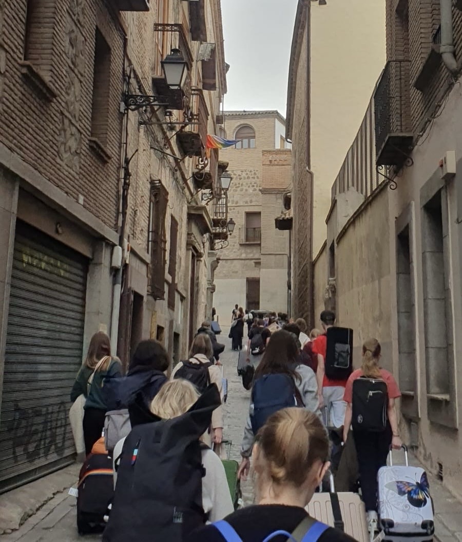 Um 10:00 Uhr trafen sich alle am „Plaza de Zocodover“ zur Stadtführung. In zwei Gruppen aufgeteilt und jeweils von einem Guide begleitet, ging es durch die Gassen der Altstadt von Toledo. Dabei erfuhren wir unter anderem, dass Toledo im Mittelalter die Hauptstadt Spaniens war und bis heute für seine hochwertigen Schwerter bekannt ist.