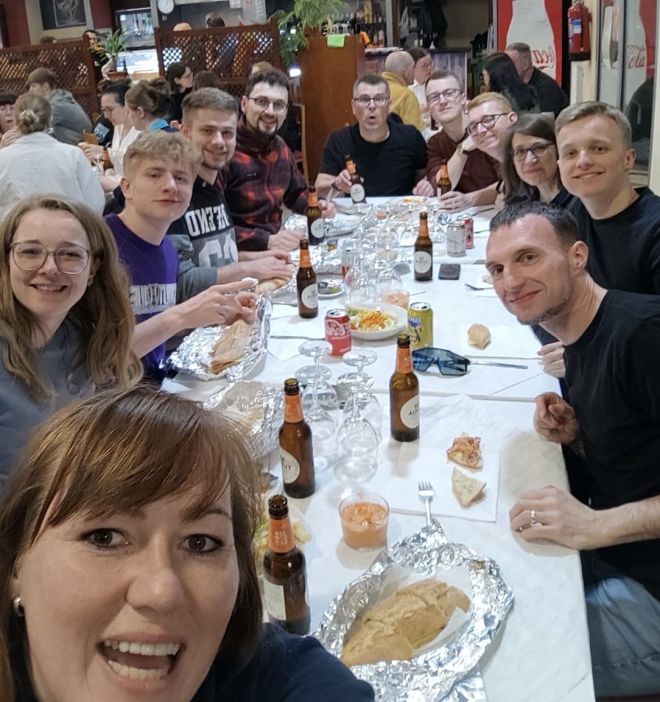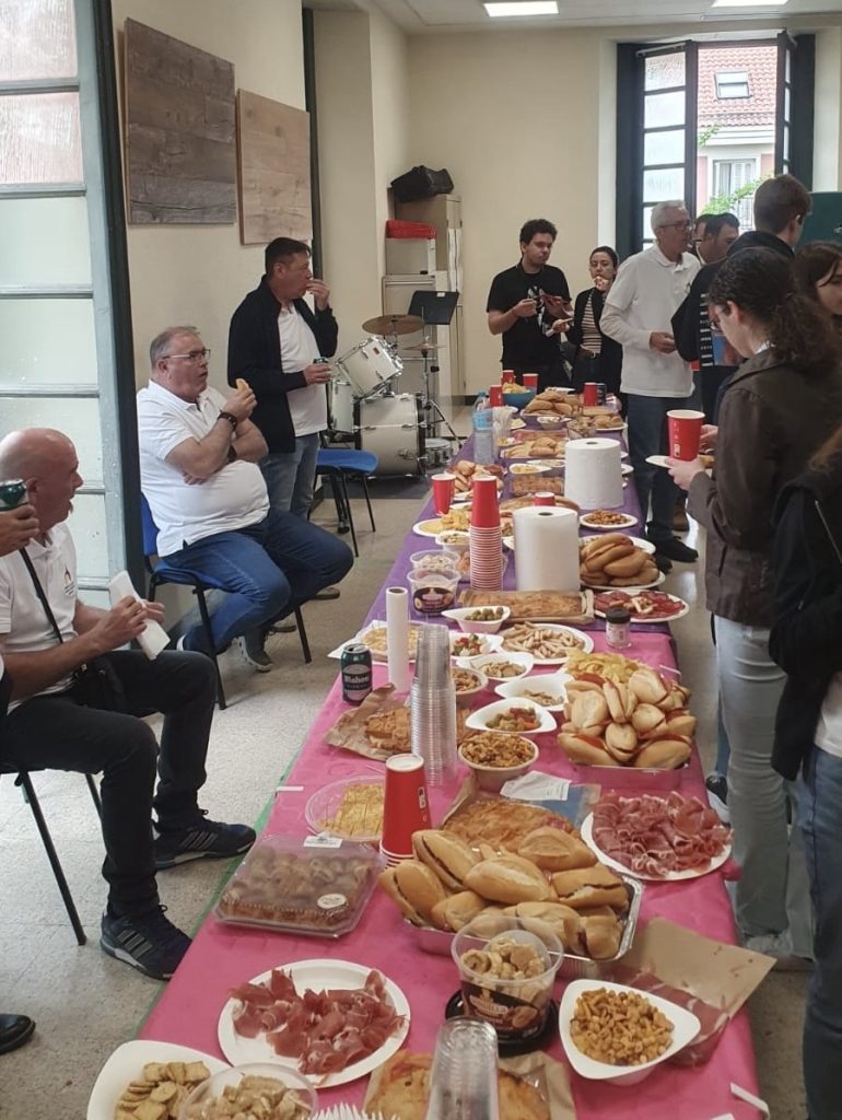Um 14:30 Uhr stand dann das gemeinsame Mittagessen mit dem Orchester aus Aranjuez auf dem Programm. Bei Pizza und guten Gesprächen wurde viel gelacht, Erfahrungen ausgetauscht und neue Kontakte geknüpft. Die entspannte Atmosphäre machte deutlich, wie sehr Musik Menschen verbindet, auch über Ländergrenzen hinweg.