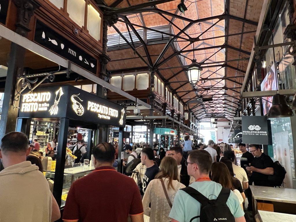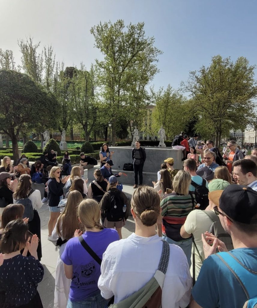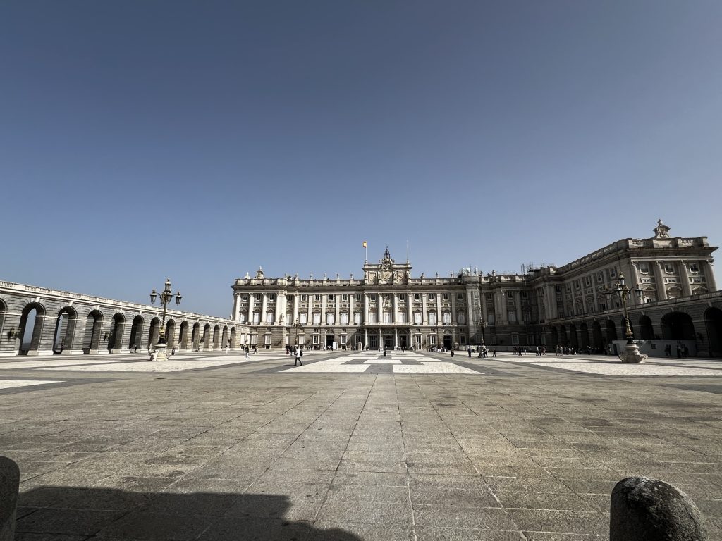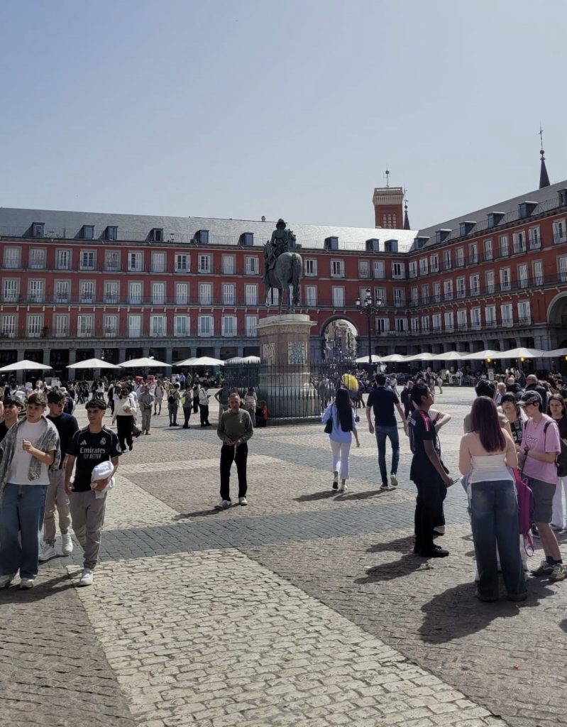 Unser Tag in Madrid begann mit einer Stadtführung. Dabei besichtigten wir einige der bekanntesten Orte der Stadt: den Königlichen Palast, die ehemalige Markthalle, in der man sich einen kleinen Snack kaufen konnte, die Plaza Mayor und die Puerta del Sol („Tor der Sonne“), die als Mittelpunkt Spaniens gilt. Nebenbei bekamen wir den Hinweis, gut auf unsere Taschen zu achten, da Taschendiebstähle in der Stadt relativ häufig vorkommen. Tatsächlich wurde ein Teil unserer Gruppe später sogar Zeuge einer hitzigen Verfolgungsjagd in der Innenstadt Madrids.
