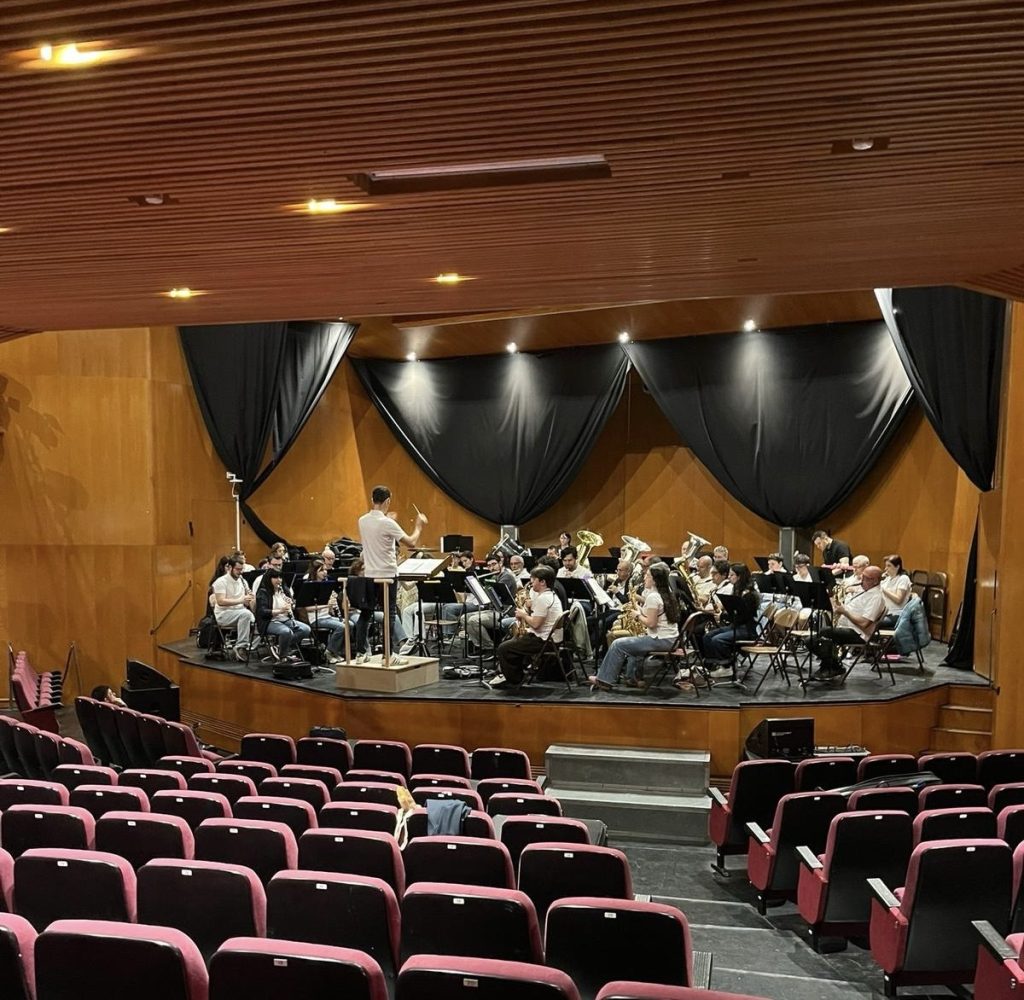 Um 12:45 Uhr trafen wir uns dann alle am Konzertort in Aranjuez wieder. Dort lauschten wir zunächst kurz dem örtlichen Orchester, bevor wir selbst zu den Instrumenten griffen und noch eine kleine Probe einlegten. Nach der morgendlichen Freizeit war es wieder Zeit, gemeinsam als Orchester zusammenzufinden und sich musikalisch auf den weiteren Tag vorzubereiten.