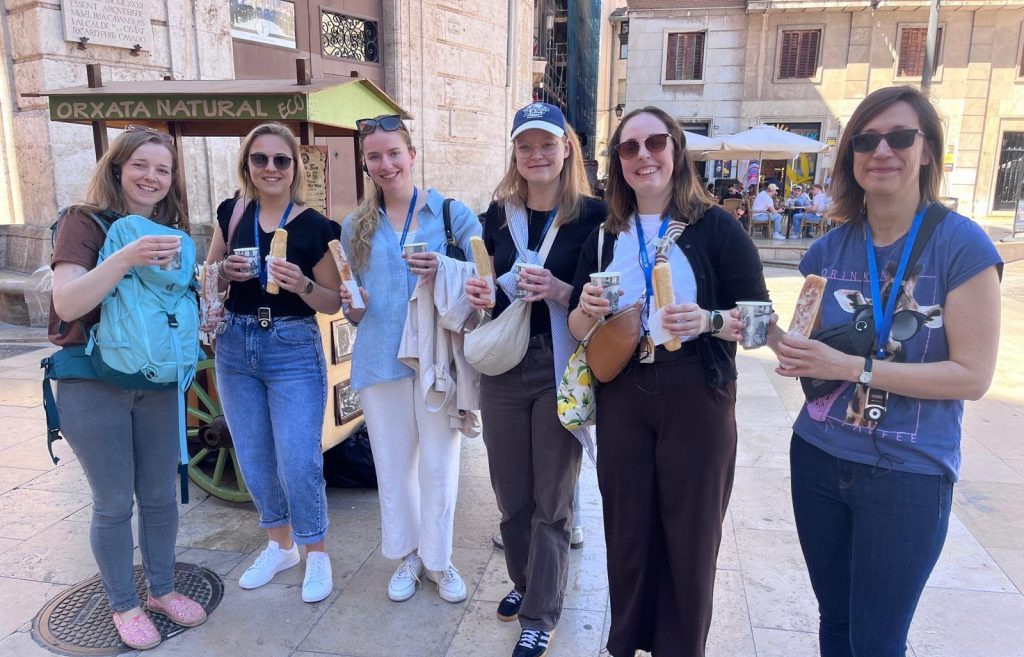 Im Anschluss führte uns unser Weg in die Altstadt von Valencia. Nach einigen kleinen Irrungen und Wirrungen stieß dort schließlich auch unser Dirigent Thomas Conrad zu uns. Die Altstadt begeisterte uns mit ihrem Rokoko-Charme: Enge Gassen, das schmalste Haus Spaniens und – bedingt durch den Feiertag – lebhaft gefüllte Plätze luden zum Entdecken und Verweilen ein. Natürlich verkosteten wir auch regionale Spezialitäten wie die Erdmandelmilch, der man hier nahezu wundersame Heilkräfte zuschreibt.