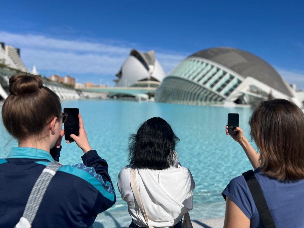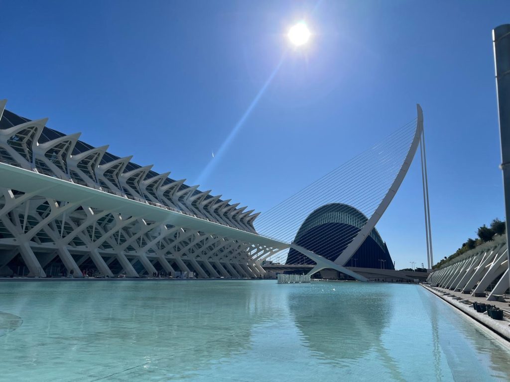 Die Ciudad de las Artes y de las Ciencias ist ein moderner Architekturkomplex über mehrere hundert Quadratkilometer, der mit seinen futuristischen, weißen Formen und spiegelnden Wasserflächen wie eine eigene Stadt aus der Zukunft wirkt. Mit dem Hintergrundwissen, dass z. B. Star Wars hier gedreht wurde und auch eine der größten Bühnen weltweit ist hier beherbergt ist, imponierte uns das Gelände umso mehr.